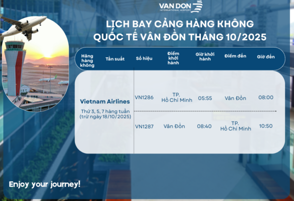 Thông tin các chuyến bay gần nhất tại Cảng hàng không Vân Đồn